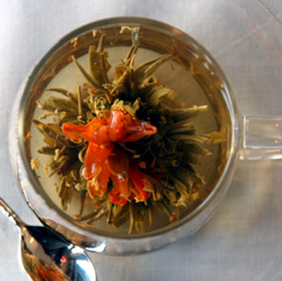 Display your flowering teas in a lovely glass teapotFlowering Osmanthus Tea